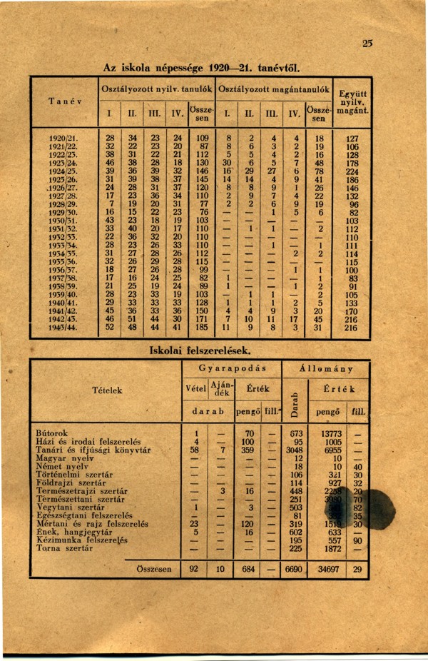 BONYHÁDI IMMACULATA INTÉZETE Romai Katholikus Leányiskolájának Évkönyve 1943-44 iskolai évről.